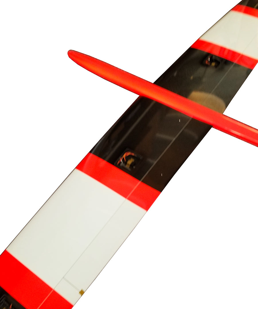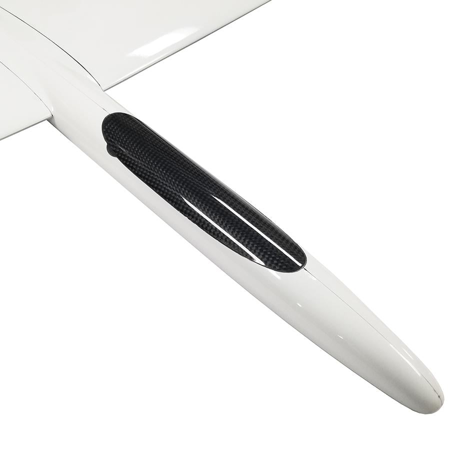 High level of prefabrication and quality second to none! The wings and fuselage have wire harnesses installed and carbon pushrods installed. Unique "solid core" style hinge line on all surfaces means you won't jam pesky epoxy wipers in top wings skins. If you want gap seals just use tape, really simple! Brass control horns pre-installed in wind surfaces and ball joints pre-installed in V-tails.
